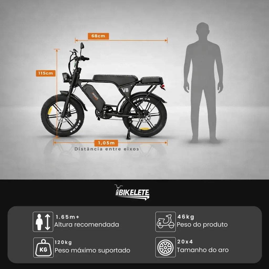 Ficha Técnica Completa da Bicicleta Elétrica Bikelete V8 1000W.